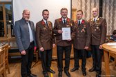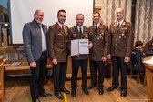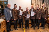 Eine besondere und für die Geehrten unerwartete Auszeichnung erhielten drei Kameraden. Für ihren außerordentlichen Einsatz in der Feuerwehr sowie ihre Unterstützung im Kommando, die weit über das übliche Maß hinausgeht, wurde ihnen das Feuerwehr-Bezirksverdienstmedaille 2. Stufe in Silber verliehen.