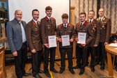 Im Rahmen der Versammlung wurden drei neue Mitglieder der Feuerwehrjugend – Martetschläger Marco, Krieger Moritz und Steinkellner Manuel – sowie ein neues aktives Mitglied, Maximilian Huber, feierlich angelobt.