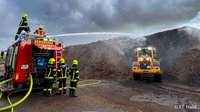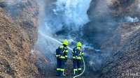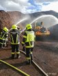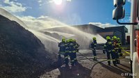 Die Einsatzstelle wurde abgesichert und eine Löschwasserversorgung über einen Hydranten sowie einen Löschbrunnen zu zwei Tanklöschfahrzeugen aufgebaut. Zwei Trupps unter Atemschutz nahmen zunächst die Brandbekämpfung mit C-Rohren vor. Um an die tief im Inneren liegenden Glutnester zu gelangen, wurde das Brandgut mit Hilfe eines firmeneigenen Radladers auseinandergezogen. Zusätzlich wurde ein Bagger der Firma Hasenöhrl hinzugezogen um auch in höheren Ebenen gezielt arbeiten zu können. Anschließend wurden die freigelegten Bereiche intensiv durch den Einsatz von zwei Wasserwerfern abgelöscht.