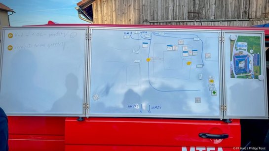 Alarmiert wurde Alarmstufe 1, doch aufgrund der Entwicklung des Brandes mussten im Verlauf der Übung einige Feuerwehren nachalarmiert werden. Die Wasserversorgung wurde von den Feuerwehren über verschiedene Hydranten und Löschteiche vorgenommen werden. Übungen dieser Art sind ein wichtiger Bestandteil der Ausbildung. Bei großen Einsätzen ist es entscheidend den Überblick über die eingesetzten Feuerwehren, Mannschaften und Trupps behalten. Es ist dabei wichtig die Lage zu dokumentieren, die Lage in all ihren Aspekten einzuschätzen um folglich den richtigen Einsatz der Ressourcen und Entscheidungen treffen zu können.