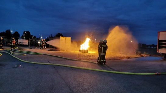 Neben dem richtigen Einsatz von Löschmitteln wurden auch die Themen Einsatztaktik und das korrekte Herstellen einer Löschwasserversorgung von den ortsgegebenen Wasserentnahmestellen gelehrt und beübt.
