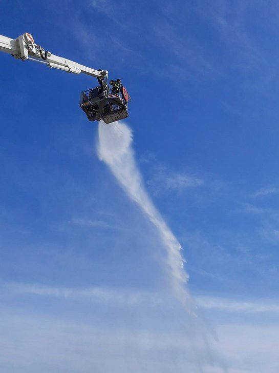 Ein zentraler Bestandteil der Ausbildung war der Einsatz der Teleskopmastbühne (TMB). Die Teilnehmer wurden im Umgang TMB eingewiesen und trainierten das gezielte Einsetzen des Wasserwerfers.