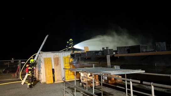 Zur Übung gehörten das Ausrüsten während der Anfahrt, das Herstellen einer externen Wasserversorgung sowie der Angriff durch einen Atemschutztrupp mit Schlauchkorbtrage. Ein weiterer Schwerpunkt lag auf dem taktischen Vorgehen: Der erste Trupp musste über eine Leiter auf einen Container gelangen und dort die Löschmaßnahmen zu starten, dem zweiten Trupp wurde es etwas leichter gemacht, da er den Auftrag zu ebener Erde erledigen konnte.